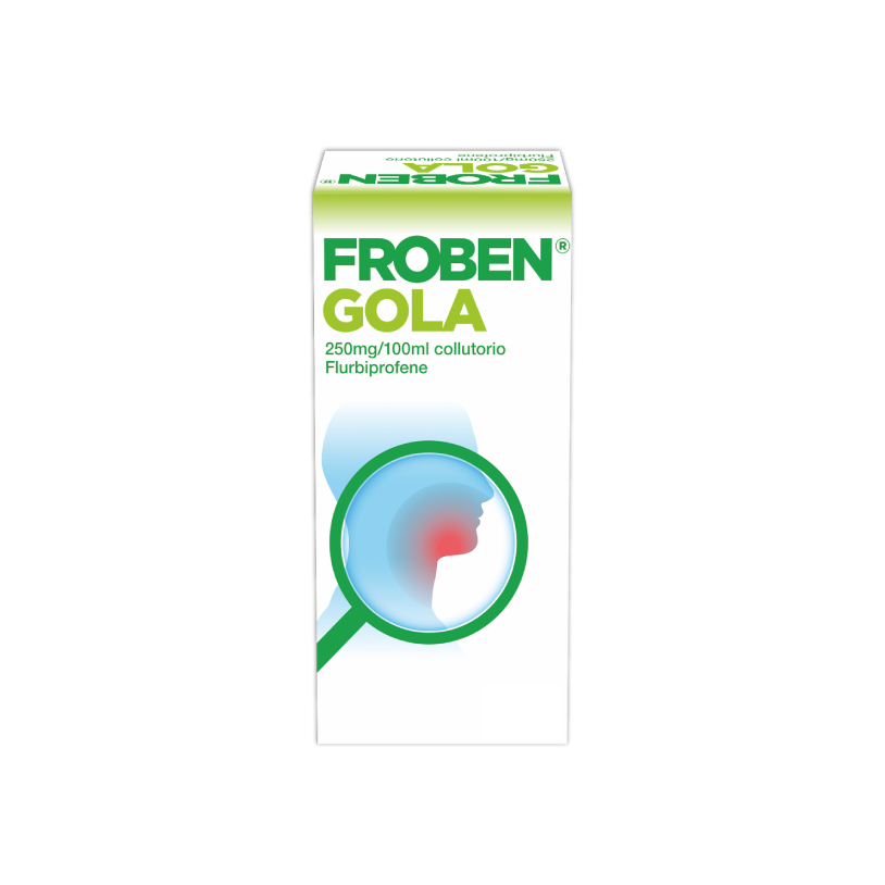FROBEN® GOLA collutorio contiene flurbiprofene ed appartiene ad un gruppo di medicinali chiamati farmaci anti-infiammatori non-steroidei (FANS), utilizzati per alleviare il dolore, l’arrossamento, il calore ed il gonfiore dovuti all’infiammazione.