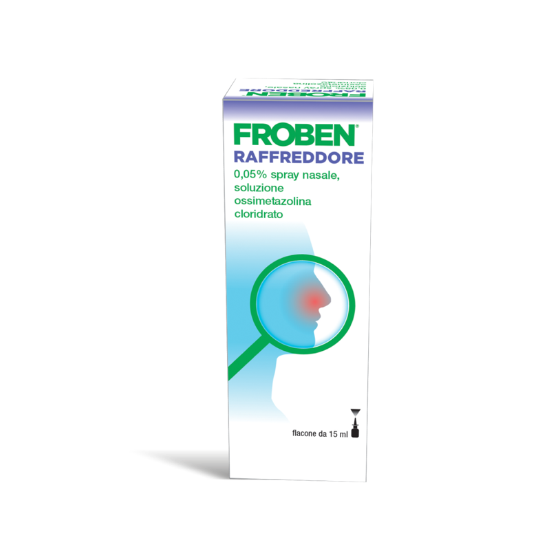 FROBEN® Raffreddore, un medicinale per uso nasale, determina un prolungato sollievo dall’ostruzione nasale, in caso di raffreddore, in quanto agisce restringendo i vasi sanguigni della mucosa del naso (decongestionante nasale).